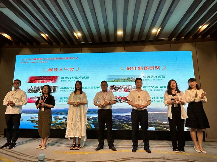 5月30日,“美好中國 幸福旅程”荊州市夏季文旅消費場景推介會在湖北松滋召開。會上,洪湖悅兮半島旅游區(qū)榮獲“荊州市春節(jié)旅游最佳人氣獎”。