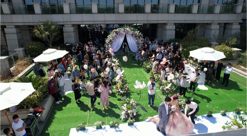 國慶期間,金灣酒店成為愛與幸福的匯聚之地。酒店接待婚宴25場、600余桌,餐飲宴席營收逾百萬元。一場場浪漫唯美的國慶婚宴在這里盛大舉行,一對對新人在親朋好友的祝福中攜手步入婚姻殿堂,以“小家”之福慶賀“大國”之興,百姓婚姻與國共榮。酒店憑借專業(yè)管理、優(yōu)質(zhì)服務(wù),為新人們打造出綠色清新的草坪婚禮、時尚摩登的西式婚禮、傳統(tǒng)溫馨的中式婚禮,贏得賓客的一致好評。