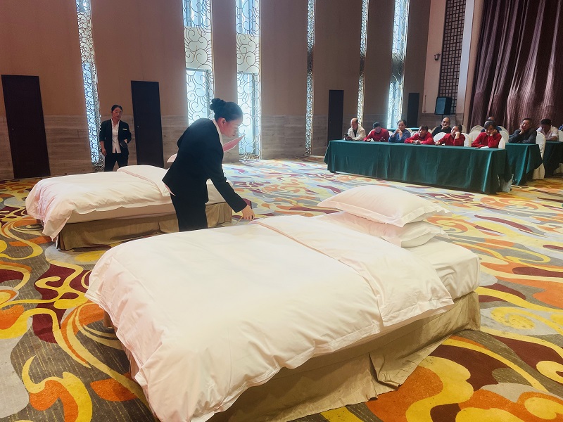 此次技能大賽共有餐飲服務(wù)、客房服務(wù)、溫泉服務(wù)、工程設(shè)備測試、消防器材使用、專業(yè)技能知識等9項(xiàng)。在近一個(gè)星期的時(shí)間里,新老員工共同競技,最終產(chǎn)生了各項(xiàng)競賽的前三名。
