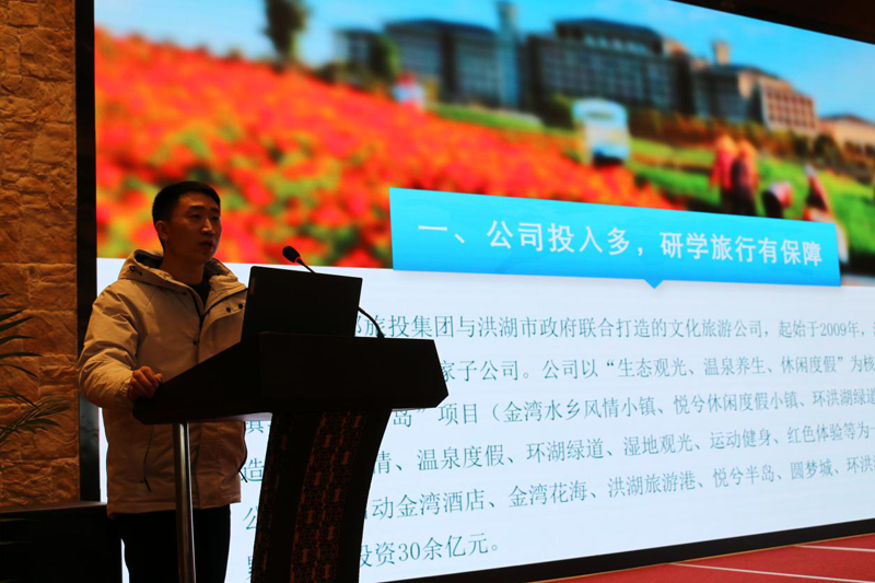 洪旅集團(tuán)黨委書記、董事長(zhǎng)梁長(zhǎng)林介紹了洪旅集團(tuán)的發(fā)展歷程,他從洪湖紅色底蘊(yùn)、自然生態(tài)、交通條件和研學(xué)課程設(shè)計(jì)等4個(gè)方面推介了洪旅集團(tuán)研學(xué)工作情況。