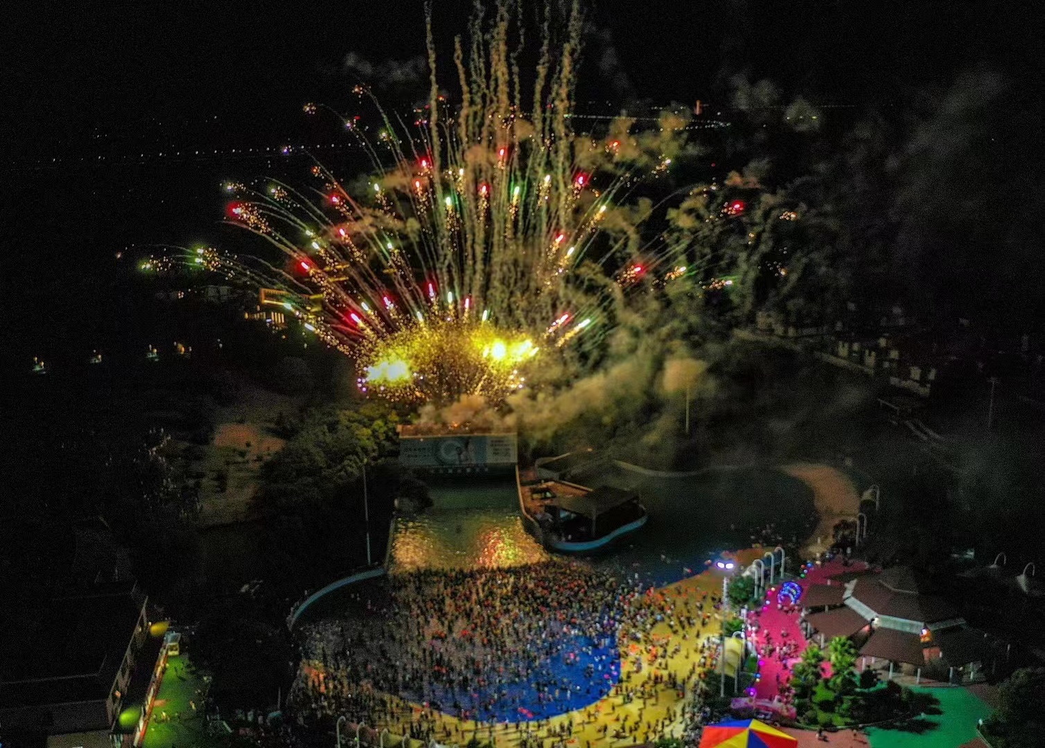 煙花盛開 游人如織丨洪湖市首屆水上煙花秀在悅兮半島水上樂園