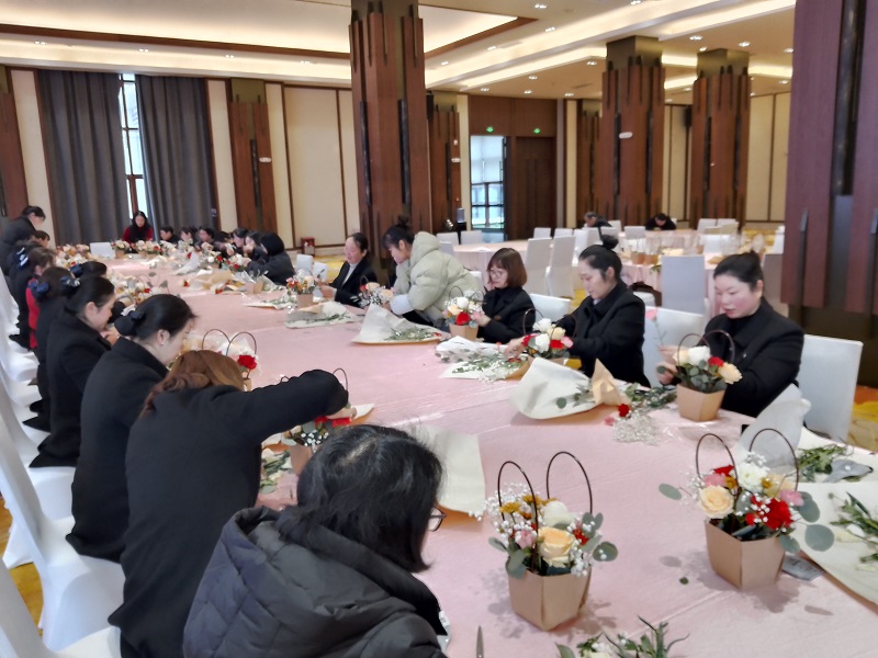 在悅兮半島片區(qū),公司組織開展以“相遇‘三八’節(jié),采摘踏青行”為主題的江灘野菜采摘活動。女職工們相約而行,來到長江邊,收獲早春的果實,她們賞春踏青,采摘野菜,閑聊家常趣事……活動氛圍輕松和諧,歡聲笑語此起彼伏,處處洋溢著女同胞們的青春和熱情,盡情展示“半邊天”的豪邁和風采;在金灣片區(qū),公司組織女職工開展了“三月艷陽天,喜迎三八節(jié)”主題慶祝活動。聘請專業(yè)花藝老師為大家介紹了花卉知識、插花藝術(shù)、購買鮮花常識及相關(guān)注意事項等,在老師的指導(dǎo)下,大家用自己靈巧的雙手,將多種花卉,修剪、整枝,再根據(jù)不同的色彩、形狀有層次地搭配在一起,一盆盆融合了女職工們豐富想象力的插花作品呈現(xiàn)在大家面前,充分展現(xiàn)了女職工們的心靈手巧。